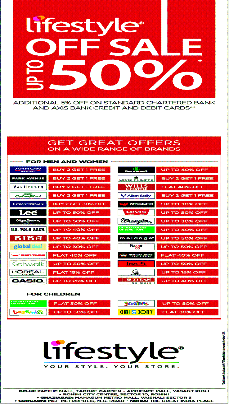 Lifestyle Presents FLAT 50% Off only on 23rd Jan 2013