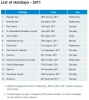 26th January, 2011 Wednesday Republic Day 2nd March, 2011 Wednesday Mahashivratri 12th A.. Detail